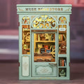 Savarankiško surinkimo medinė knygų atrama–book nook su integruotu LED apšvietimu sukuria detalų miniatiūrinį knygyno interjerą ir estetiškai papuošia knygų lentyną. Kompaktiški matmenys leidžia patogiai įstatyti tarp knygų, o vakare įsijungiantis apšvietimas subtiliai išryškina dioramos detales.