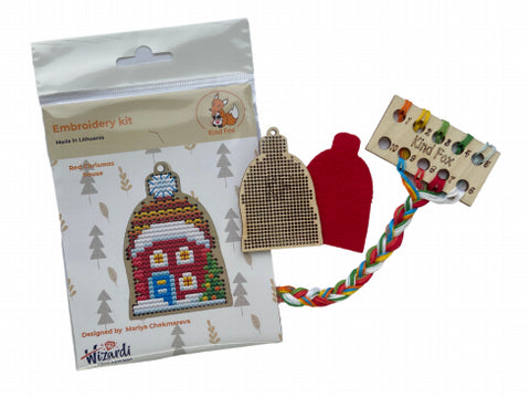 Raudonas kalėdinis namelis – šventinė dekoracija KF022/92