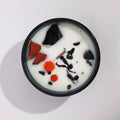 Žvakėje integruoti raudonasis jaspis ir juodasis agatas. Raudonasis jaspis padeda įžeminti ir sutelkti dėmesį, juodasis agatas siejamas su apsaugine energija. Kompoziciją papildo subtilios džiovintos gėlės, kurios pabrėžia natūralų, rafinuotą įvaizdį. Uždekite The Devil Crystal Floral ir sukurkite motyvuojančią, kūrybiškumą žadinančią aplinką.