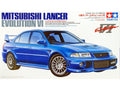 Plastikinis 1/24 mastelio automobilio modelis tiksliai atkartoja Tamiya Mitsubishi Lancer Evolution VI; skirtas surinkimui ir kolekcijai.