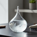 Elegantiškas, lašo formos stiklinis barometras leidžia vizualiai stebėti orų pokyčius namuose ar biure. Viduje esantis tirpalas kristalizuojasi priklausomai nuo temperatūros ir atmosferos slėgio, todėl galima numanyti saulėtą, lietingą ar vėjuotą orą. Tai funkcionalus orų prognozavimo akcentas ir minimalistinė interjero dekoracija.
