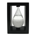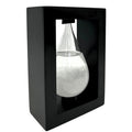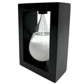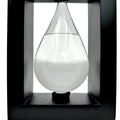 Lašo formos audrų stiklas mediniame rėme – elegantiškas cheminis barometras, leidžiantis vizualiai stebėti orų kaitą pagal kristalų susidarymą tirpale. Minimalistinis juodas MDF rėmas pabrėžia stiklo indo formą ir suteikia šiuolaikišką, santūrų įvaizdį namams ar biurui.