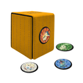 Praktiška kortų laikymo dėžutė su magnetiniu užsegimu skirta „Pokémon“ TCG ir kitoms standartinio dydžio kolekcinėms kortoms. Komplekte yra keturi teminiai magnetiniai ženkliukai, leidžiantys lengvai individualizuoti išvaizdą; ženkliukų skersmuo 1,5 colio (apie 3,8 cm). Viduje – dvi pirštų išpjovos patogiam kortų paėmimui, todėl kortos greitai pasiekiamos tiek žaidimo metu, tiek laikant kolekcijoje.