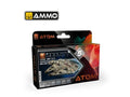 Vandens pagrindo akrilinių dažų rinkinys pilkiems atspalviams modeliavimui ir dioramoms. ATOM formulė skirta darbui teptuku ir aerografu: geras dengimas, savaime išsilyginantys, greitai džiūstantys, matinė ir patvari apdaila. Bekvapiai, netoksiški, tinka sluoksniuoti su akrilais, emaliais ir dekalių tirpalais po visiško išdžiūvimo.