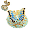 Metalinė drugelio formos papuošalų dėžutė su kristalais, emaliuota
