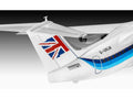 Plastikinis surenkamas lėktuvo modelis pradedantiesiems: Revell BAe 146-200 „AirUK“ dovanų komplektas, mastelis 1/144. Rinkinyje: detalės, lipdukai su surinkimo instrukcija, klijai, teptukas ir akriliniai dažai. Surinkto modelio ilgis 19,6 cm. Pagaminta Pietų Korėjoje.