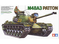 Plastikinis surenkamas modelis masteliu 1/35 karinio tanko Tamiya M48A3 Patton; rinkinyje yra plastikinės detalės, lipdukai ir surinkimo instrukcija. Pagaminta Japonijoje. Kodas: 35120.