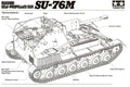Tamiya Russian Self-Propelled Gun SU-76M – rusiškas savaeigis pabūklas, tikslus istorinio prototipo atvaizdas modeliavimui ir kolekcijoms.
