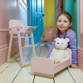 Stilinga medinė lėlių lovelė praturtins žaidimus ir sukurs jaukią erdvę mėgstamoms lėlėms.