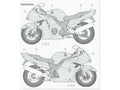 Plastikinis surenkamas motociklo modelis 1/12 mastelio, vaizduojantis Honda CBR1100XX Super Blackbird; tikslus Tamiya modelių rinkinys kolekcionavimui ir maketavimui.