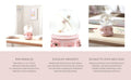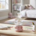 Raktiniai akcentai: muzikinė dėžutė, šokanti balerina, stiklinis gaublys, pastelinė rožinė, interjero dekoracija, klasikinė muzika, raminanti melodija.