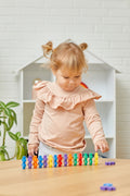 Didelės detalės – 50 mm. Rekomenduojama 1–6 m. vaikams. Galima plauti skalbimo mašinoje ar indaplovėje iki 90 °C. Pagaminta Danijoje. CE ženklinimas.