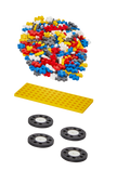 Rinkinys „Automobilis Herojus“: 200 mini (20 mm) detalių, 1 Plus Plus pagrindukas ir 4 ratai – sukurkite tvirtą automobilį ir kitus modelius iš vienos formos.
