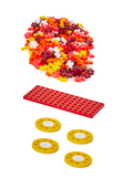 Rinkinyje: 200 mini (20 mm) detalių, 1 Plus Plus pagrindukas ir 4 ratai. Spalvos – ugniniai atspalviai. Pakuotė – plastikinis vamzdelis.