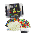 Rinkinyje 2000 detalių: 700 klasikinių, 700 neoninių ir 600 šviečiančių tamsoje, taip pat 4 pagrindukai (2 juodi, 2 balti), 12 ratų ir idėjų knygelė.