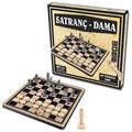 Šachmatų ir šaškių rinkinys: medinė 30×30 cm lenta, plastikinės figūros