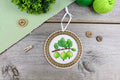 - Technika: kryželiu siuvinėjimas ant perforuoto medinio pagrindo