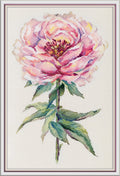 Elegantiško bijūno motyvu grįstas kryželiu siuvinėjimo rinkinys, skirtas kurti detaliam ir estetiškam paveikslui. Galutinis darbas išryškina subtilias žiedlapių formas ir tinka ramiam, klasikiniam interjerui, suteikdamas jaukumo ir spalvinės harmonijos.