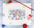 Kompaktiškas siuvinėjimo kryželiu rinkinys šventinei temai „Festive round dance“, skirtas dekoratyviam paveikslui kurti namų dekorui ar dovanai.