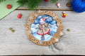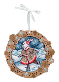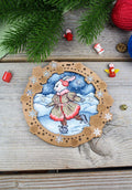 Miniatiūrinis kryželiu siuvinėtas kūrinys ant medinio pagrindo perteikia ramų žiemos peizažą „Ant užšalusios upės“. Kompaktiškas formatas tinka jaukiam interjero dekorui ar subtiliai dovanai.