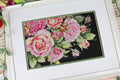 Kryželiu siuvinėjimo rinkinys su kilnių rožių motyvu, sukurtas elegantiškam gėlių paveikslui. Baigtas darbas – apie 18 × 27 cm, tinkamas rėminimui ir namų interjero papuošimui.