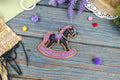 Siuvinėjimo kryželiu rinkinys „Mažas tamsus arkliukas“, medinė bazė, 8×8 cm