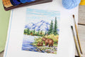 Siuvinėjimo kryželiu rinkinys „Prie kalnų upės“, 20×16 cm