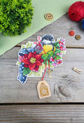 Siuvinėjimo kryželiu rinkinys „Šventinė zylė“, 14×13 cm