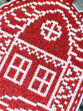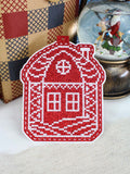Šventinis kryželių siuvinėjimo rinkinys eglutei „Namas sniege“, 13×11 cm