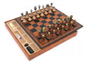 Klasikinis šachmatų rinkinys su metalinėmis/ medinėmis šachmatų figūrėlėmis ir dirbtinės odos žaidimo lenta