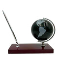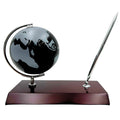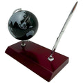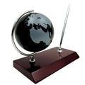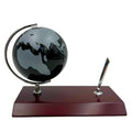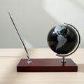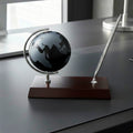Stilingas biuro aksesuaras, jungiantis dekoratyvinį gaublį ir rašiklio laikiklį, suteikia darbo stalui tvarkos ir elegancijos. Klasikinio stiliaus derinys – juoda spalva, chromuotas metalas ir tamsaus medžio faktūra – subtiliai pabrėžia profesionalią aplinką namų biure ar darbo vietoje.
