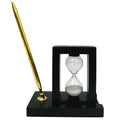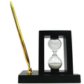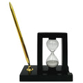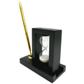 Stalo rinkinys: rašiklio laikiklis ir 3 min. smėlio laikrodis – juodas biurui