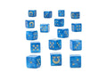 • 16 šešiasienių (d6) kauliukų su tiesiomis briaunomis