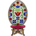 Velykinis kryželiu siuvinėjimo rinkinys ant perforuotos faneros pagrindo sukurtas dekoratyviniam kiaušinio formos akcentui. Tai patogus pasirinkimas norintiems derinti siuvinėjimą kryželiu ir šventinį namų dekorą: rezultatas yra tvirtas, ilgaamžis ir lengvai pritaikomas įvairioms interjero vietoms ar dovanoms.