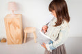 ARIAS miegantis kūdikėlis – švelni, 28 cm lėlytė, skirta mokyti rūpestingumo ir empatijos. Ji saldžiai miega užmerktomis akimis nešyklėje, aprengta pilkais drabužėliais, skleidžia verkimo garsą ir turi čiulptuką (į burnytę neįsideda). Tinka vežti lėlių vežimėliu, todėl žaidimas tampa dar tikroviškesnis.