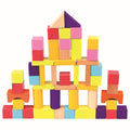 Spalvotos medinės kaladėlės vaikams nuo 12 mėn.: rinkinyje 50 detalių plastikiniame kibirėlyje su dangteliu–rūšiuokliu. Per atitinkamas formeles mažylis įdeda stačiakampius, kvadratus ir cilindrus, mokydamasis atskirti geometrines figūras bei pažinti spalvas. Žaislas pažymėtas CE.