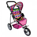 Sportinis lėlių vežimėlis Maxi – margas triratis modelis su tvirtu metaliniu rėmu, sulankstoma konstrukcija ir reguliuojamo aukščio rankena. Ant atlošo – pakeliamas stogelis nuo saulės, apačioje – erdvus krepšys lėlės daiktams. Integruoti saugos diržai saugiai prilaiko žaislą, kieti ratukai užtikrina stabilų riedėjimą. Spalva: rožinė su margais akcentais.