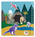 Daugkartinis dinozaurų užduočių rinkinys kelionėms ir namams. Spręskite užduotis, spalvinkite vandens markeriu, o išdžiūvus piešinius knygelę galėsite naudoti vėl.