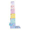 Visi elementai patogiai sudedami į didžiausią kubelį su rankenėle, todėl lengva laikyti ir nešiotis. Sustatyto bokšto aukštis – 67 cm. Pakuotė: 13 x 13 x 13 cm. Rekomenduojama nuo 2 metų.