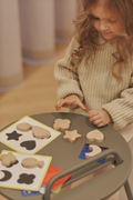 Igroteco sensorinis žaidimas iš medžio lavina lytėjimą, smulkiąją motoriką ir kalbinius gebėjimus, skatina įvardyti bei apibūdinti formas.