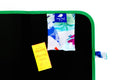 Rinkinį sudaro išskleidžiamas piešimo padėklas „Dinozauras“ ir 4 nedulkančios, netepančios kreidelės.