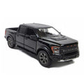 KiNSMART 2022 Ford F‑150 Raptor juodas pikapo modelis 1:46 – atsidarančios durelės, atgal traukimo mechanizmas, licencijuotas