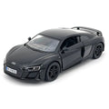 KiNSMART 2020 Audi R8 Coupé – juodas, licencijuotas žaislinis modelis, tikro automobilio mini kopija.