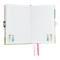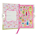 Dydis 15 × 10 × 1,5 cm. Viduje rasite lipdukų su geriausiomis draugėmis lėlėmis ir jų aksesuarais, spalvotas juosteles puslapiams žymėti. Liniuoti puslapiai papuošti iliustracijomis.