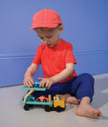 Mentari medinis autovežis su 3 automobiliais – pakeliama rampa, kaučiukmedis, 25×7×13 cm, 3+