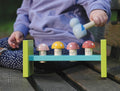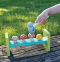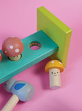 Rinkinyje – tvirta kalimo bazė, 4 grybukų formos kuoleliai ir patogus paukštelio formos kūjis. Puikus MENTARI medinis kalimo žaidimas smulkiajai motorikai ir rankų–akių koordinacijai lavinti.