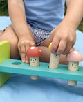 Mentari medinis kalimo žaidimas „Grybukai“ su paukštelio kūjeliu – vaikams 18+ mėn., iš kaučiukmedžio