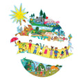 100 dalių pasaulio tematikos dėlionė: 2 mažos dėlionės ir viena didesnė, prie kurios pritvirtinamos mažosios.