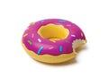 Linksmi spurgų formos pripučiami gėrimų laikikliai, kad taurės ar skardinės patogiai plūduriuotų baseine, vonioje ar vandens kibire.