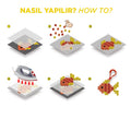 Kaip daryti: padėkite paveikslėlį po pagrinduku, pincetu dėkite atitinkamos spalvos karoliukus, uždenkite lyginimo popieriumi ir, su suaugusiojo priežiūra, lygintuvu sukamaisiais judesiais lyginkite vidutine šiluma 10–30 s, kol karoliukai susilydo. Nelaikykite lygintuvo vienoje vietoje, nuimkite popierių ir palikite atvėsti.